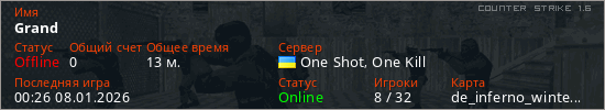 Играет на Counter Strike 1.6 сервере. Страна: УкраинаПервый раз замечен 16:58 06.01.2026
