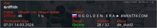 Играет на Counter Strike 1.6 сервере. Страна: РоссияПервый раз замечен 09:17 06.03.2026