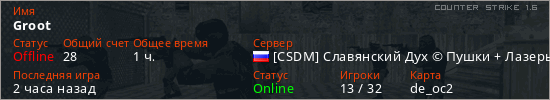 Последний раз был в сети Час назад Игрок с таким ником замечен на 17 серверах