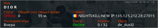 Последний раз был в сети Вчера Игрок с таким ником замечен на 11 серверах