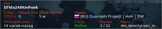 Играет на Counter Strike Global Offensive сервере. Страна: РоссияПервый раз замечен 18:51 22.03.2026