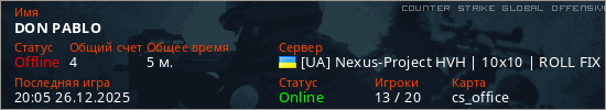 Играет на Counter Strike Global Offensive сервере. Страна: УкраинаПервый раз замечен 19:50 26.12.2025