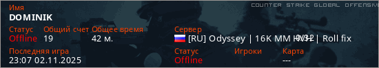 Играет на Counter Strike Global Offensive сервере. Страна: РоссияПервый раз замечен 17:57 13.10.2025