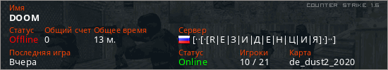 Последний раз был в сети Вчера Игрок с таким ником замечен на 32 серверах