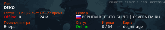 Последний раз был в сети Вчера Игрок с таким ником замечен на 44 серверах