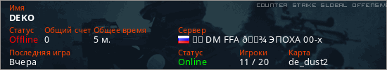 Играет на Counter Strike Global Offensive сервере. Страна: РоссияПервый раз замечен 23:37 22.02.2026