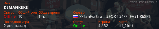 Играет на Team Fortress 2 сервере. Страна: РоссияПервый раз замечен 18:36 23.02.2026