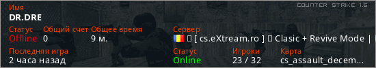 Играет на Counter Strike 1.6 сервере. Страна: РумынияПервый раз замечен 16:31 27.12.2025