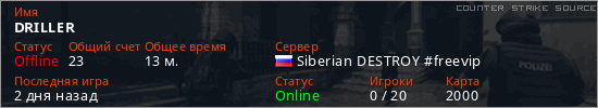 Играет на Counter Strike Source сервере. Страна: РоссияПервый раз замечен 12:39 21.02.2026