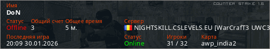 Играет на Counter Strike 1.6 сервере. Страна: РумынияПервый раз замечен 20:07 30.01.2026