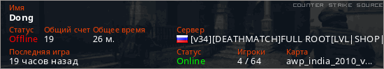Играет на Counter Strike Source сервере. Страна: РоссияПервый раз замечен 23:10 21.03.2026