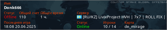 Играет на Counter Strike Global Offensive сервере. Страна: КазахстанПервый раз замечен 10:13 19.01.2025