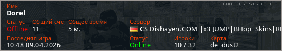 Последний раз был в сети 10:48 09.04.2026 Игрок с таким ником замечен на 8 серверах
