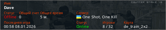 Играет на Counter Strike 1.6 сервере. Страна: УкраинаПервый раз замечен 00:39 08.01.2026