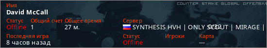 Играет на Counter Strike Global Offensive сервере. Страна: РоссияПервый раз замечен 23:33 15.01.2026