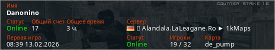 Играет на Counter Strike 1.6 сервере. Страна: ГерманияПервый раз замечен 08:39 13.02.2026