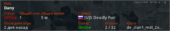 Играет на Counter Strike 1.6 сервере. Страна: РоссияПервый раз замечен 00:19 10.01.2026