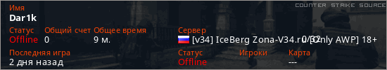 Играет на Counter Strike Source сервере. Страна: РоссияПервый раз замечен 09:19 10.02.2026