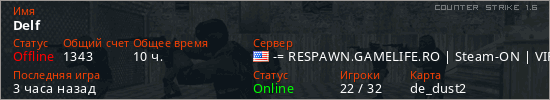 Играет на Counter Strike 1.6 сервере. Страна: СШАПервый раз замечен 01:21 29.01.2025