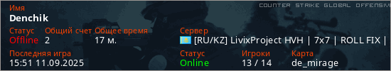 Играет на Counter Strike Global Offensive сервере. Страна: КазахстанПервый раз замечен 16:42 28.08.2025