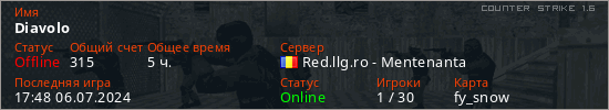 Играет на Counter Strike 1.6 сервере. Страна: РумынияПервый раз замечен 21:15 23.07.2022