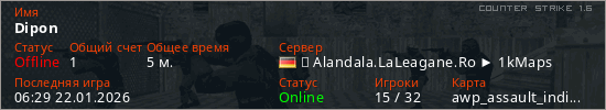 Играет на Counter Strike 1.6 сервере. Страна: ГерманияПервый раз замечен 05:47 22.01.2026