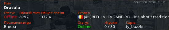 Играет на Counter Strike 1.6 сервере. Страна: РумынияПервый раз замечен 15:26 21.10.2022