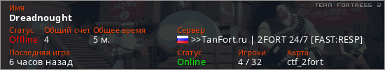 Играет на Team Fortress 2 сервере. Страна: РоссияПервый раз замечен 19:54 21.02.2026