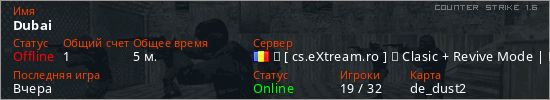 Последний раз был в сети Вчера Игрок с таким ником замечен на 21 сервере