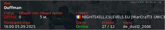 Последний раз был в сети 16:00 05.09.2025 Игрок с таким ником замечен на 3 серверах