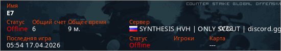 Играет на Counter Strike Global Offensive сервере. Страна: РоссияПервый раз замечен 03:37 09.04.2026