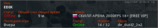 Последний раз был в сети Вчера Игрок с таким ником замечен на 11 серверах