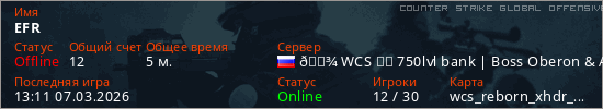 Играет на Counter Strike Global Offensive сервере. Страна: РоссияПервый раз замечен 13:09 07.03.2026