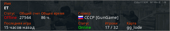 Играет на Counter Strike 1.6 сервере. Страна: РоссияПервый раз замечен 11:19 21.04.2025