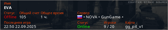 Играет на Counter Strike Source сервере. Страна: РоссияПервый раз замечен 23:40 26.11.2024