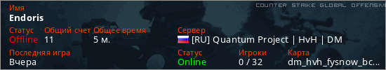 Играет на Counter Strike Global Offensive сервере. Страна: РоссияПервый раз замечен 20:42 07.04.2026