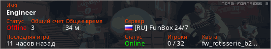 Играет на Team Fortress 2 сервере. Страна: РоссияПервый раз замечен 19:09 20.03.2026