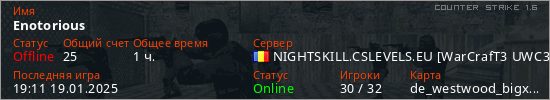 Играет на Counter Strike 1.6 сервере. Страна: РумынияПервый раз замечен 15:53 15.01.2025