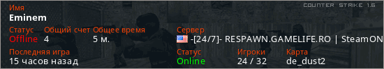 Играет на Counter Strike 1.6 сервере. Страна: СШАПервый раз замечен 19:24 05.12.2025