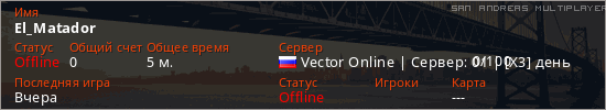 Играет на San Andreas Multiplayer сервере. Страна: РоссияПервый раз замечен 22:24 13.04.2026