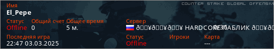 Играет на Counter Strike Global Offensive сервере. Страна: РоссияПервый раз замечен 22:42 03.03.2025