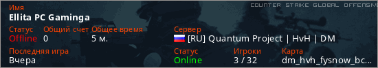 Играет на Counter Strike Global Offensive сервере. Страна: РоссияПервый раз замечен 02:46 15.04.2026