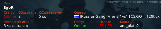 Играет на Counter Strike Global Offensive сервере. Страна: РоссияПервый раз замечен 06:18 06.03.2026