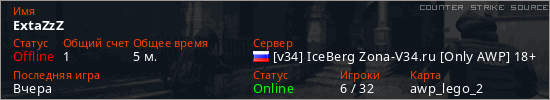 Играет на Counter Strike Source сервере. Страна: РоссияПервый раз замечен 01:11 29.03.2026