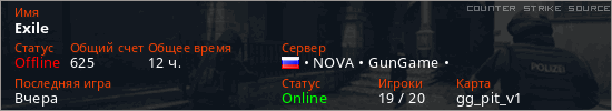 Последний раз был в сети Вчера Игрок с таким ником замечен на 16 серверах