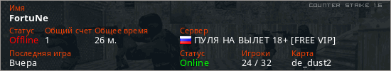 Играет на Counter Strike 1.6 сервере. Страна: РоссияПервый раз замечен 09:11 04.11.2025