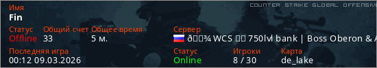 Играет на Counter Strike Global Offensive сервере. Страна: РоссияПервый раз замечен 22:57 08.03.2026