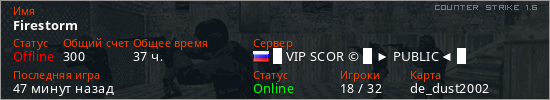 Последний раз был в сети Час назад Игрок с таким ником замечен на 16 серверах