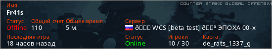 Играет на Counter Strike Global Offensive сервере. Страна: РоссияПервый раз замечен 15:05 07.03.2026