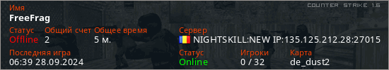 Играет на Counter Strike 1.6 сервере. Страна: РумынияПервый раз замечен 06:37 28.09.2024